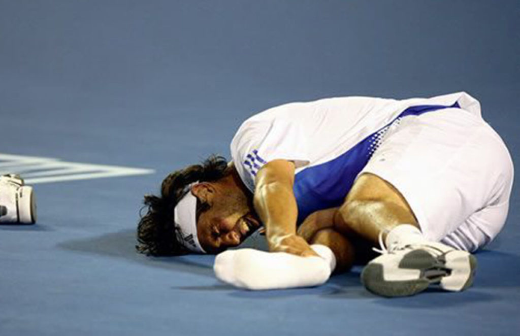 Resposta: Essa é a chamada mais maldosa do tênis, pois o fisioterapeuta não vai fazer com que ele volte a ganhar. Infelizmente, essa é uma atitude antidesportiva vista com muita frequência no circuito, especialmente juvenil.