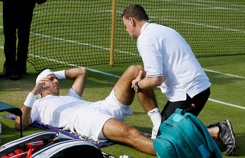 Buscar o auxílio de um fisioterapeuta é uma medida indispensável sempre que o tenista sente um incômodo ou tenha dores nos joelhos até fora de quadra.